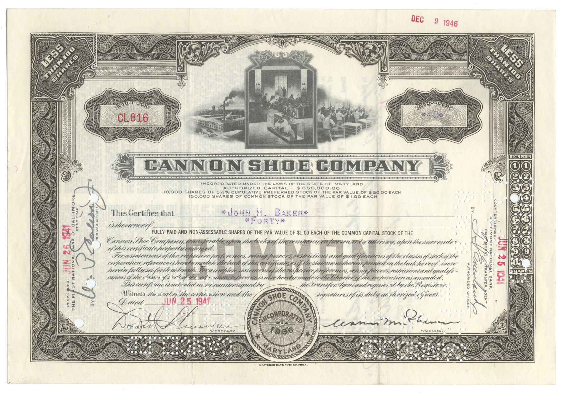 The Cannon Shoe Company was incorporated in Maryland in 1936.