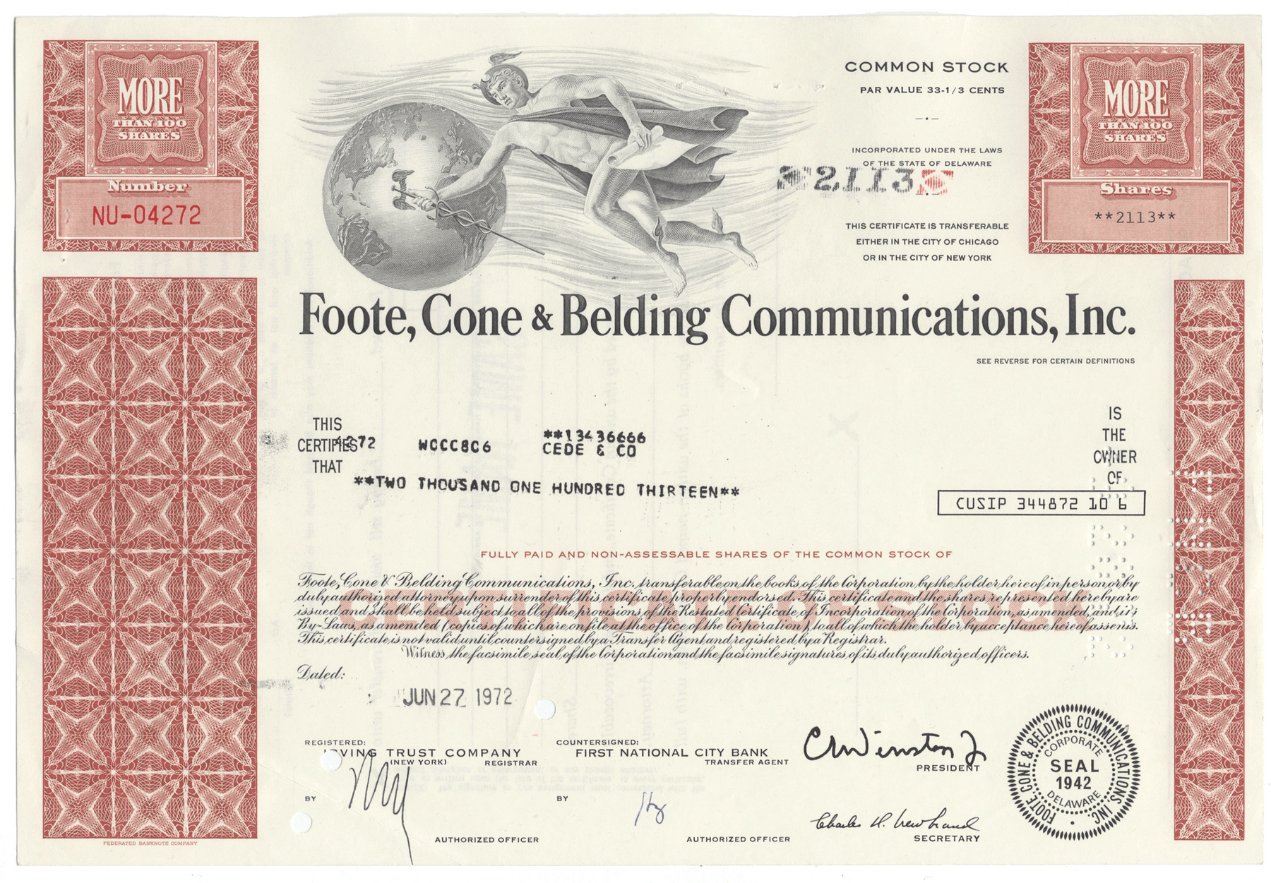 Certificates carry no value on any of today's financial indexes and no transfer of ownership is implied. All items offered are collectible in nature only. So, you can frame them, but you can't cash them in!