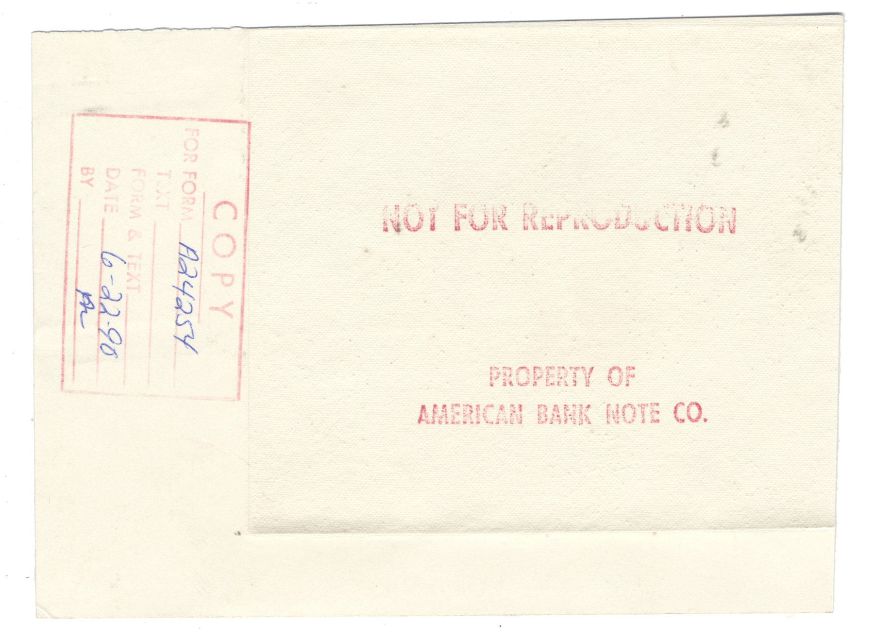American Bank Note Company Vignette Card (Serial #V 108530)