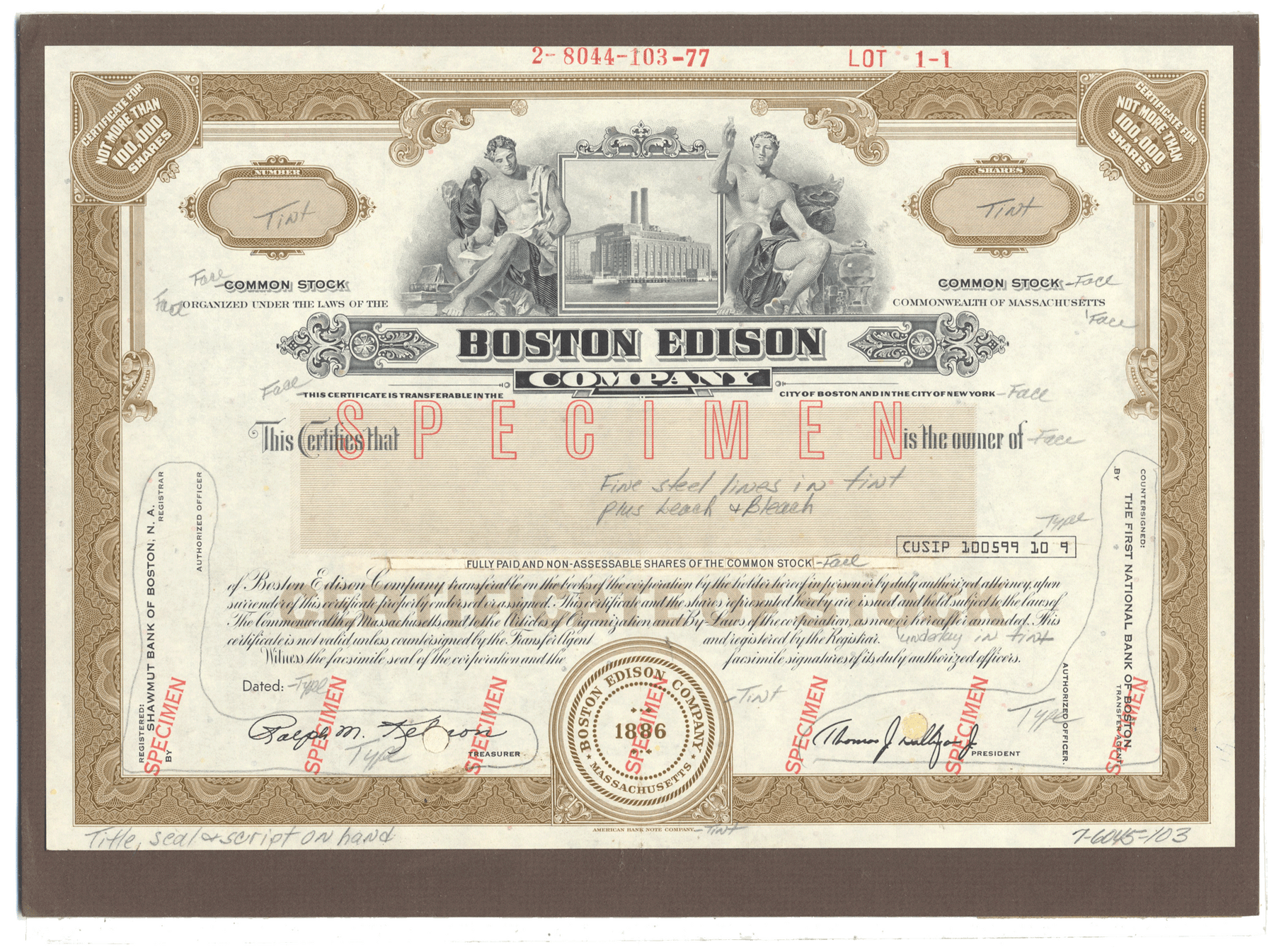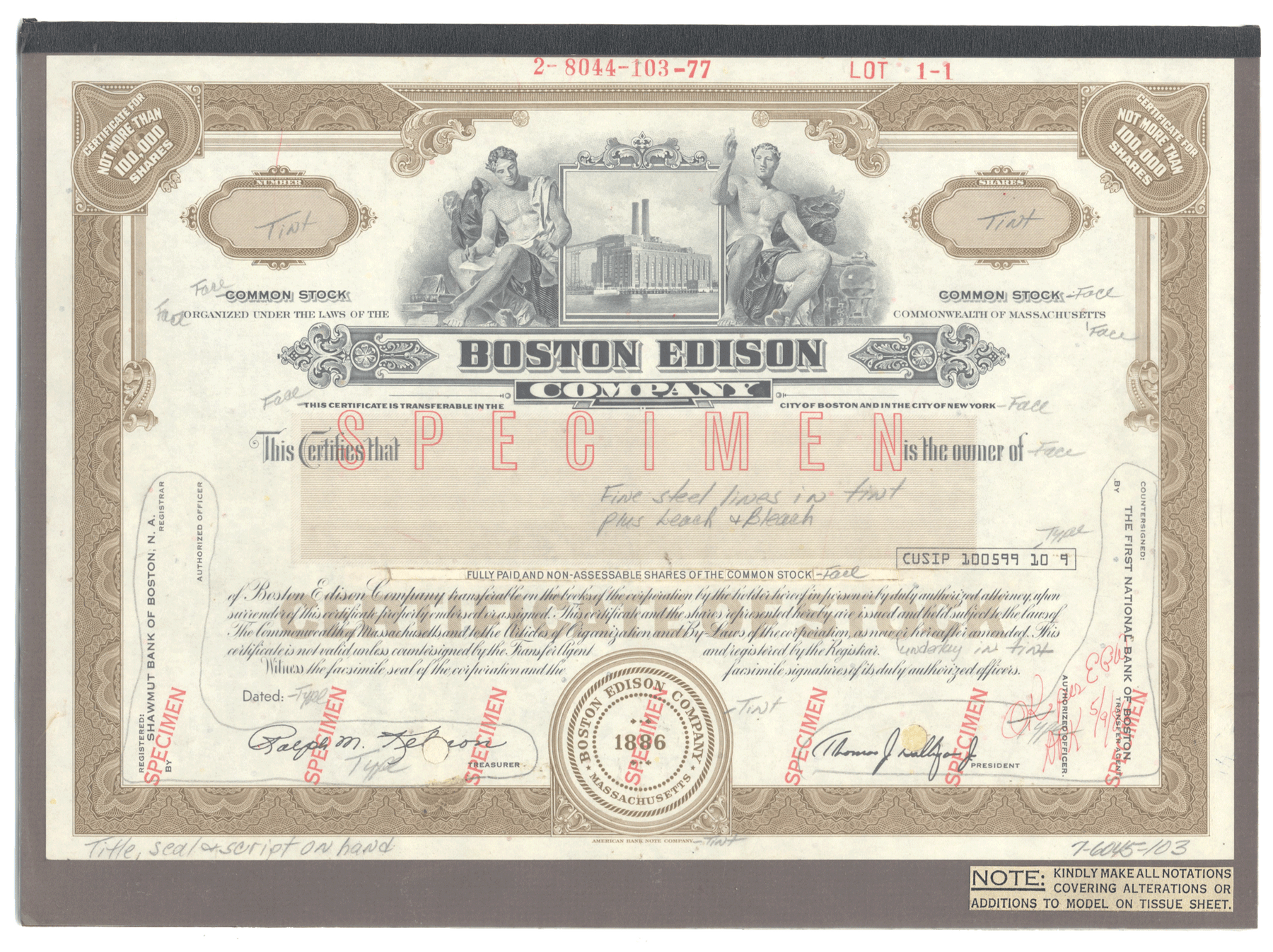 Rare BOSTON EDISON Working Proof