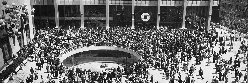 For Chase Manhattan Bank's new logo, Chermayeff & Geismar designed a stylized octagon in 1961. The Chase logo is a stylized representation of the primitive water pipes laid by the Manhattan Company, which were made by nailing together wooden planks.