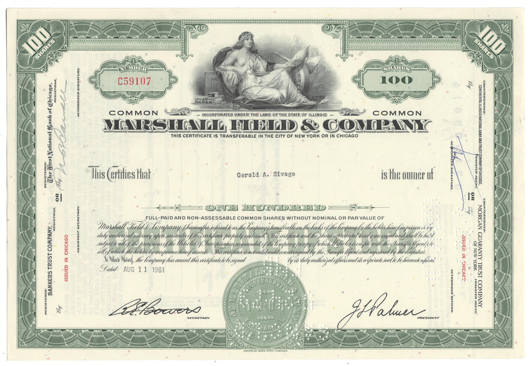 Certificates carry no value on any of today's financial indexes and no transfer of ownership is implied. All items offered are collectible in nature only. So, you can frame them, but you can't cash them in!
