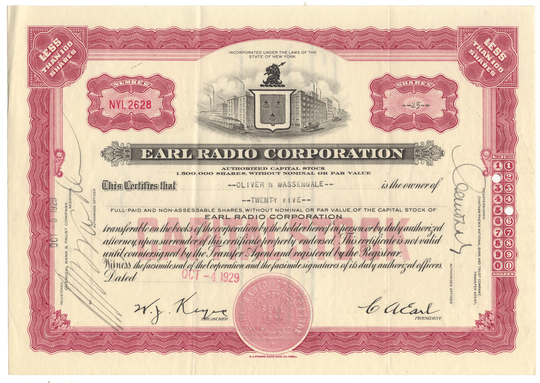 Certificates carry no value on any of today's financial indexes and no transfer of ownership is implied. All items offered are collectible in nature only. So, you can frame them, but you can't cash them in!