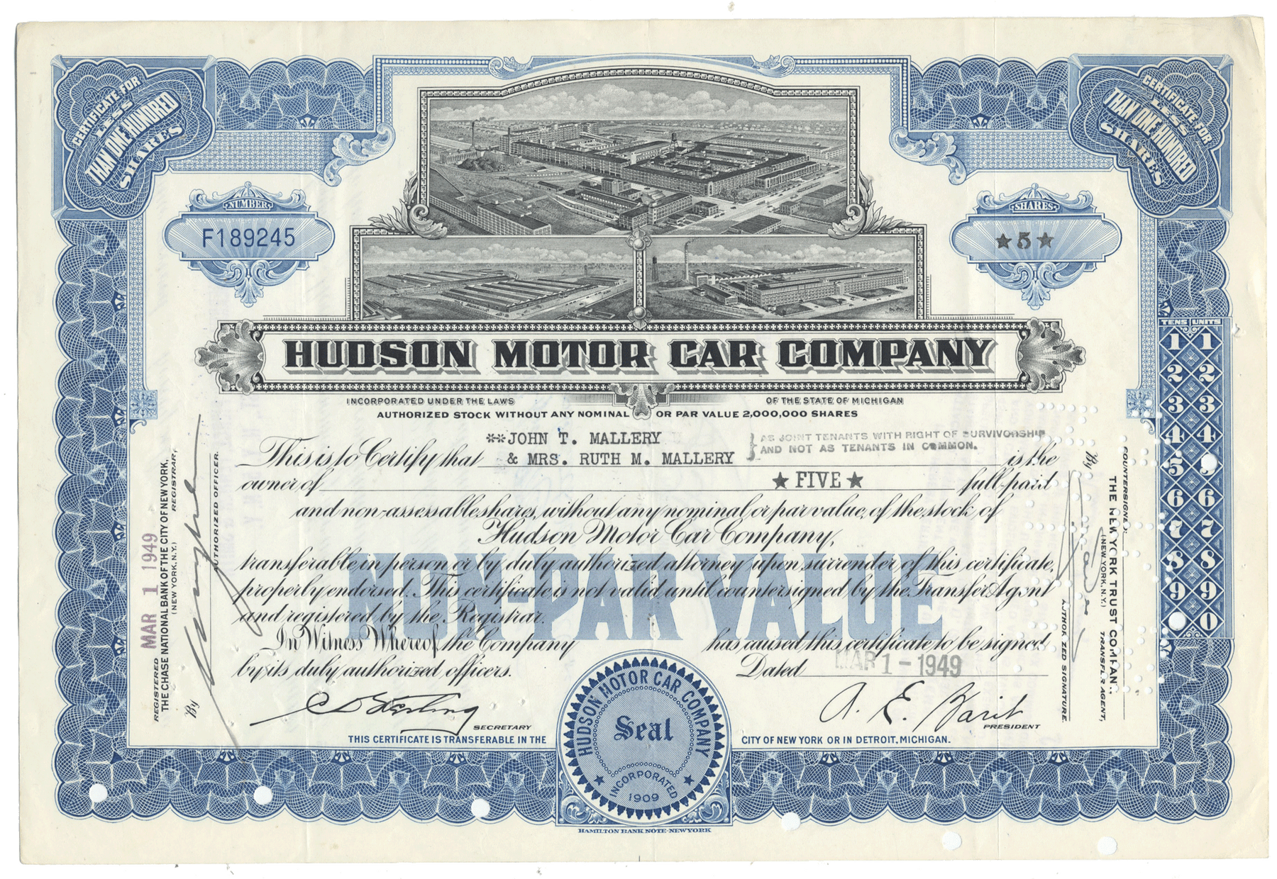 In 1909, the Hudson Motor Car Company was founded by eight Detroit businessmen. Among them was department store owner Joseph L. Hudson who mainly funded the venture. Within one year of its founding, Hudson became the eleventh-largest auto company in the United States.