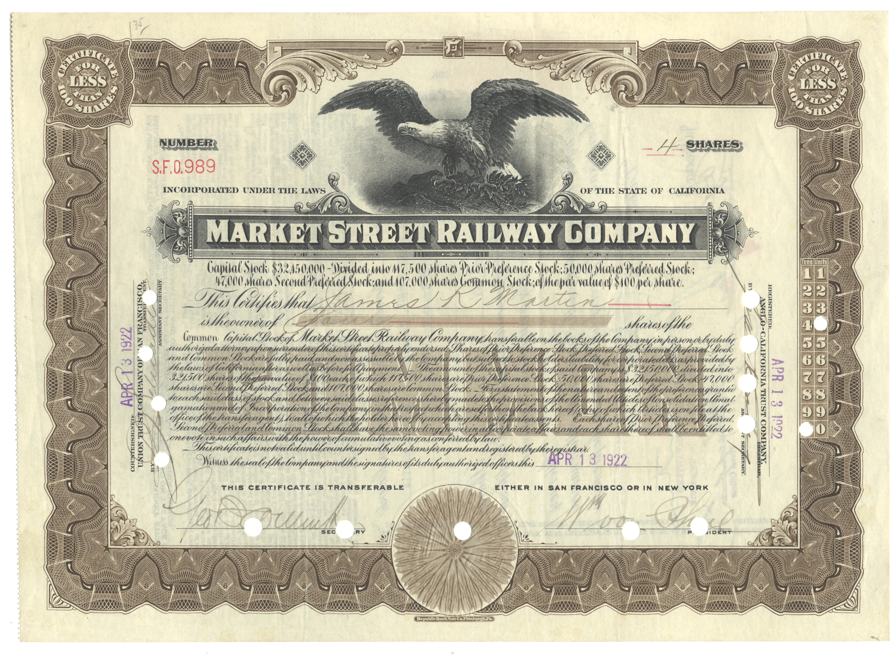 In 1902, the Southern Pacific Railroad sold their San Francisco railways to a syndicate of eastern investors, which consolidated with other San Francisco lines into a new company called the United Railroads of San Francisco (URR).