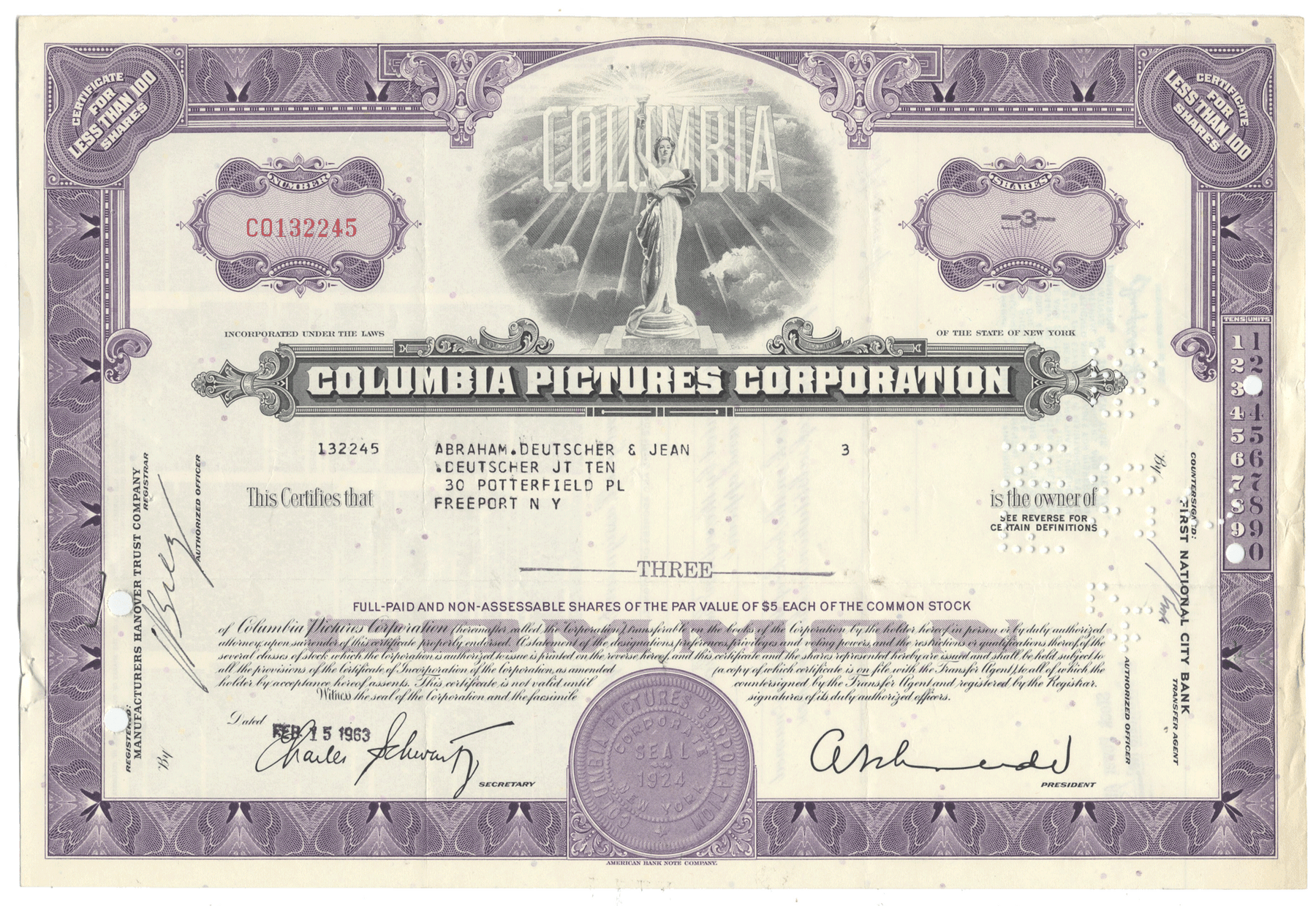 Certificates carry no value on any of today's financial indexes and no transfer of ownership is implied. All items offered are collectible in nature only. So, you can frame them, but you can't cash them in!