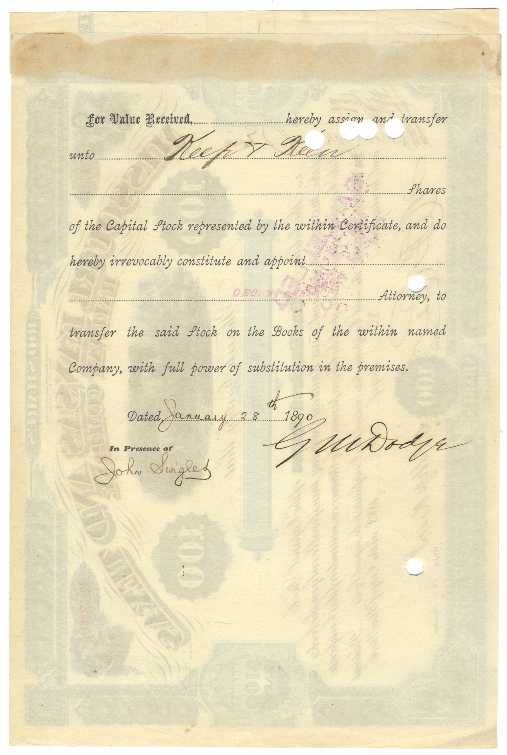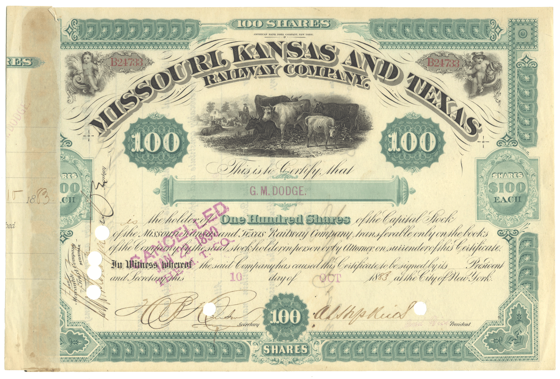 Missouri, Kansas and Texas Railway Company (Signed by Grenville Dodge)
