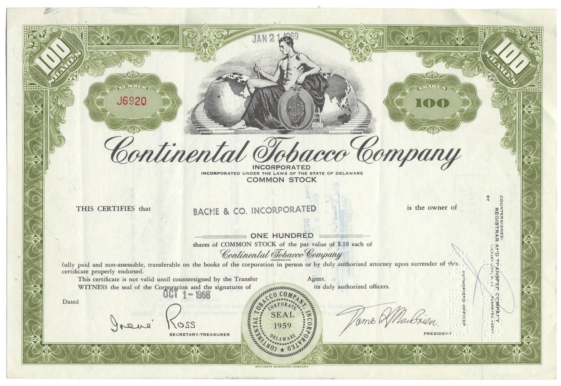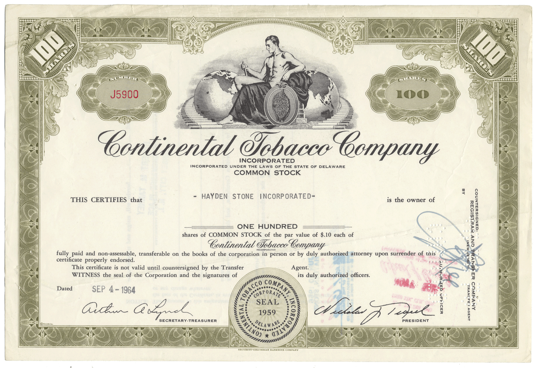 Founded in 1890, the American Tobacco Company grew mainly by acquisitions until it controlled most of the smoking tobacco industry in the USA. Its sister, the Continental Tobacco Company, was organized in 1898 to control the plug tobacco sector as where the American Snuff and American Cigar companies to control their respective segments of the tobacco trade.