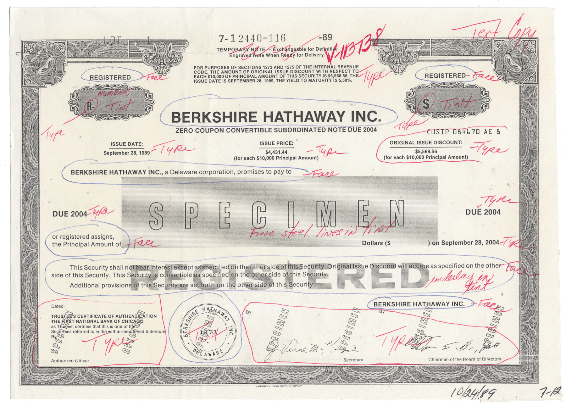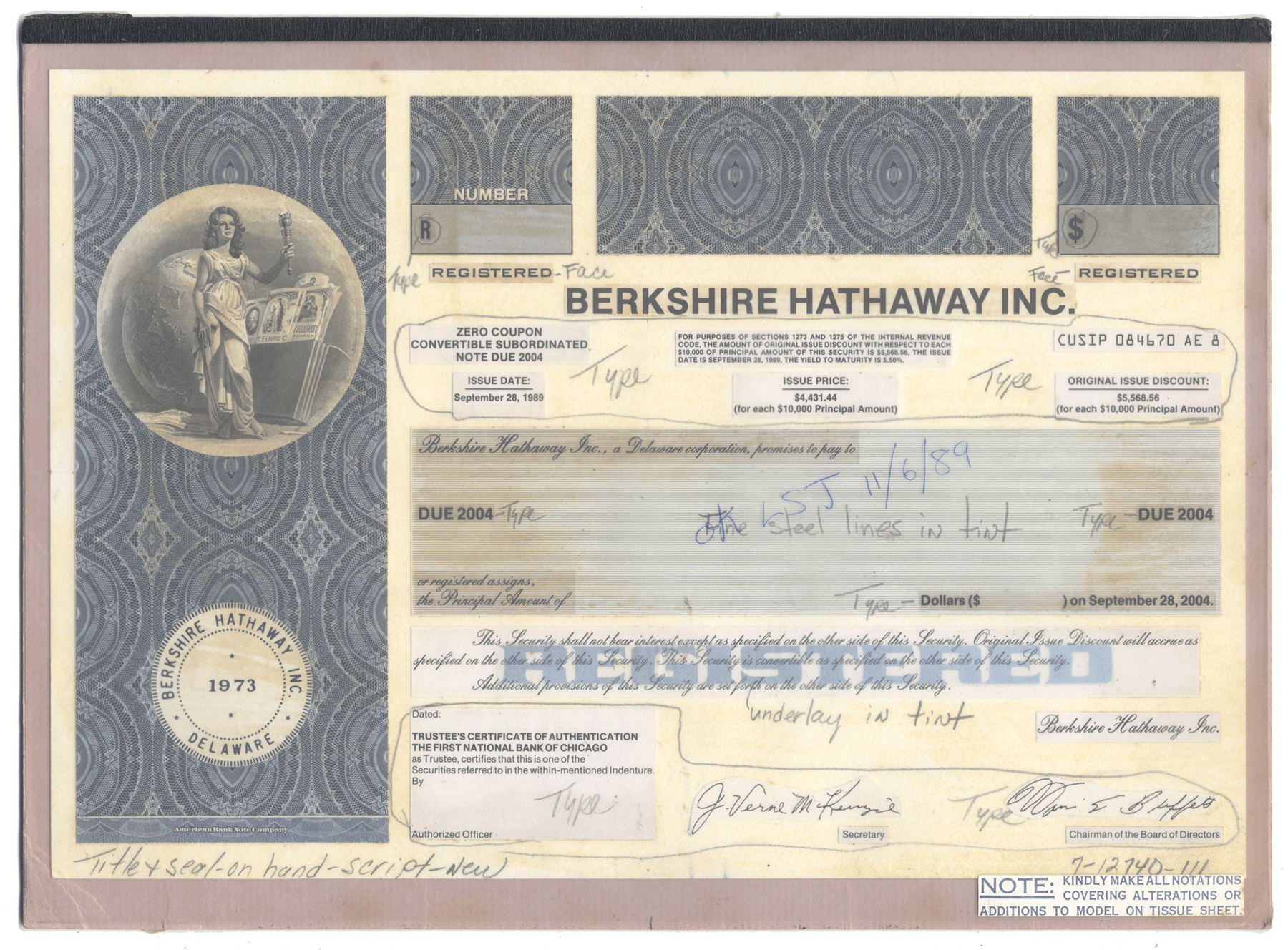 One-of-a-Kind BERKSHIRE HATHAWAY Working Proof