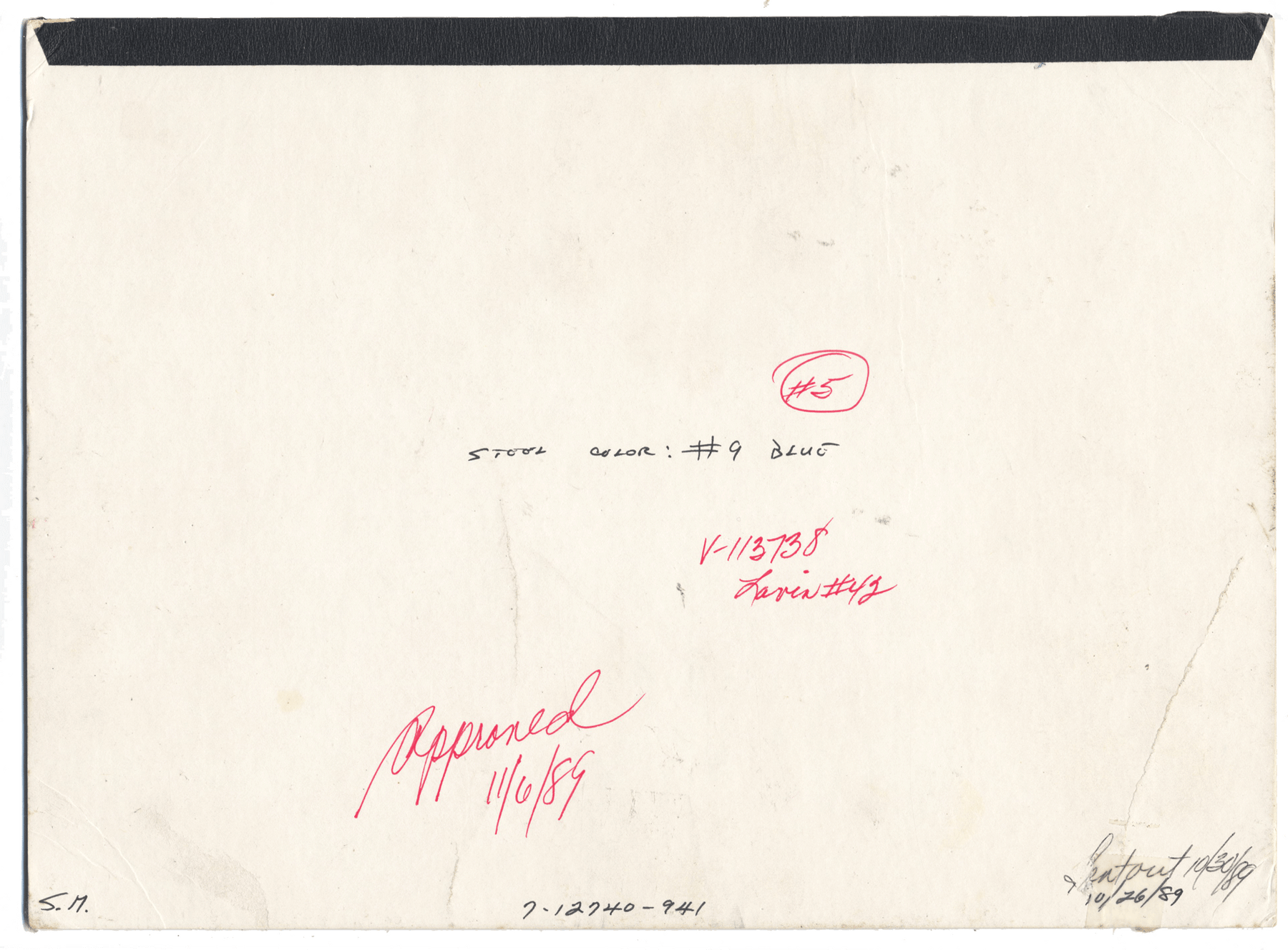 You will receive the exact proof pictured as it is the only one of it's kind. The first picture shows the proof with the edit layer lying atop the piece. The second picture shows just the proof with the plastic layer lifted out of view. The third picture shows the back of the cardboard with various notations and approvals. The fouth images shows the separate xerox copy of the proof with original notations.