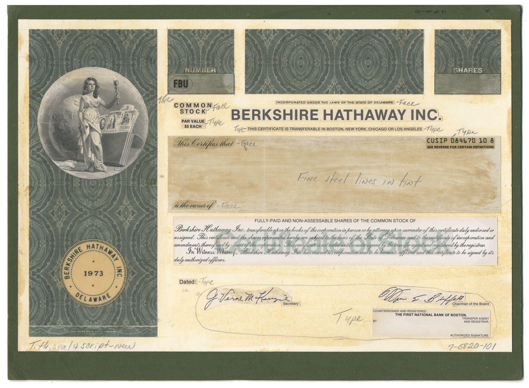 One-of-a-Kind BERKSHIRE HATHAWAY Working Proof