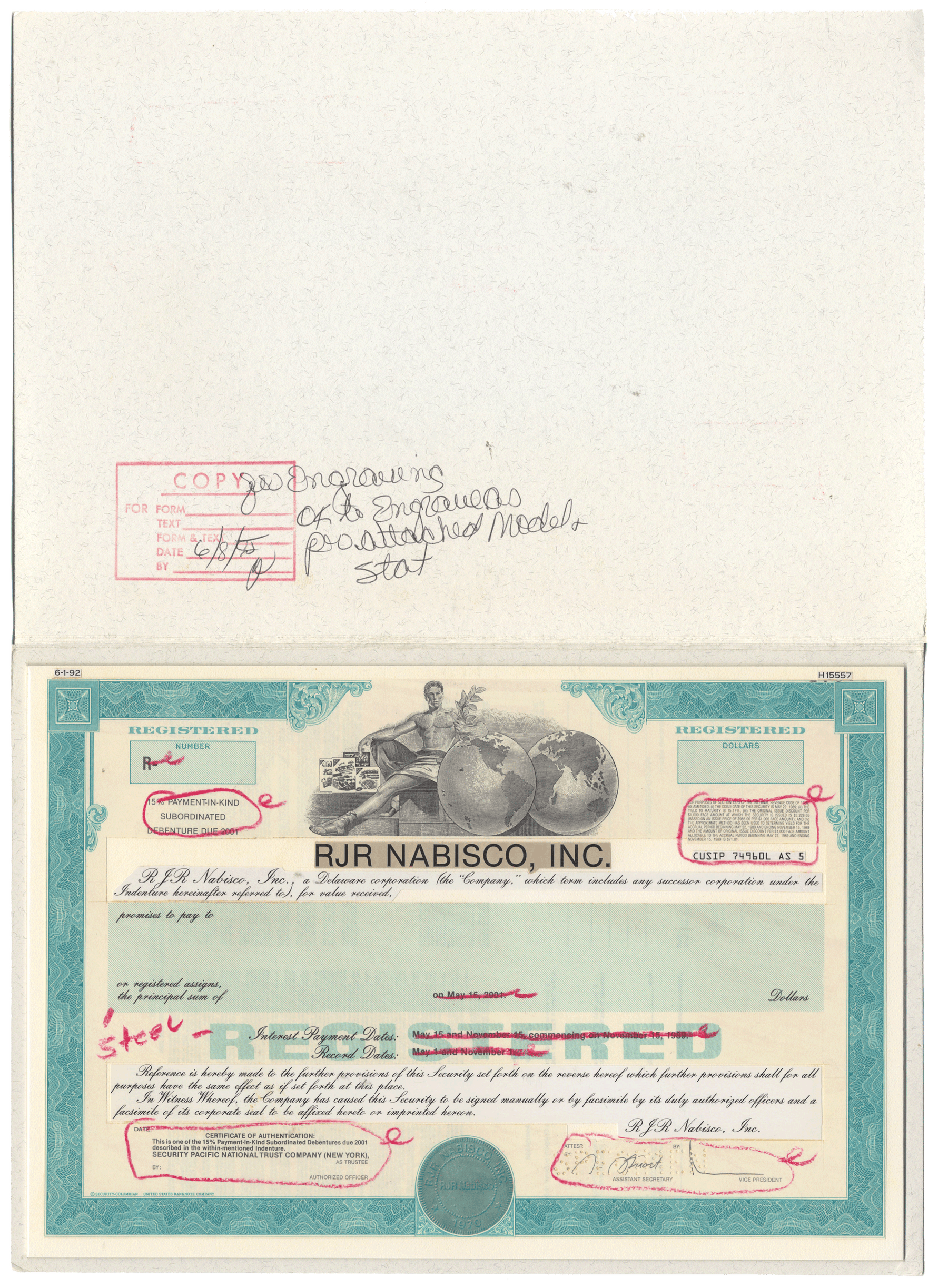 Working Proof for one of the company's Subordinated Debenture Bonds
