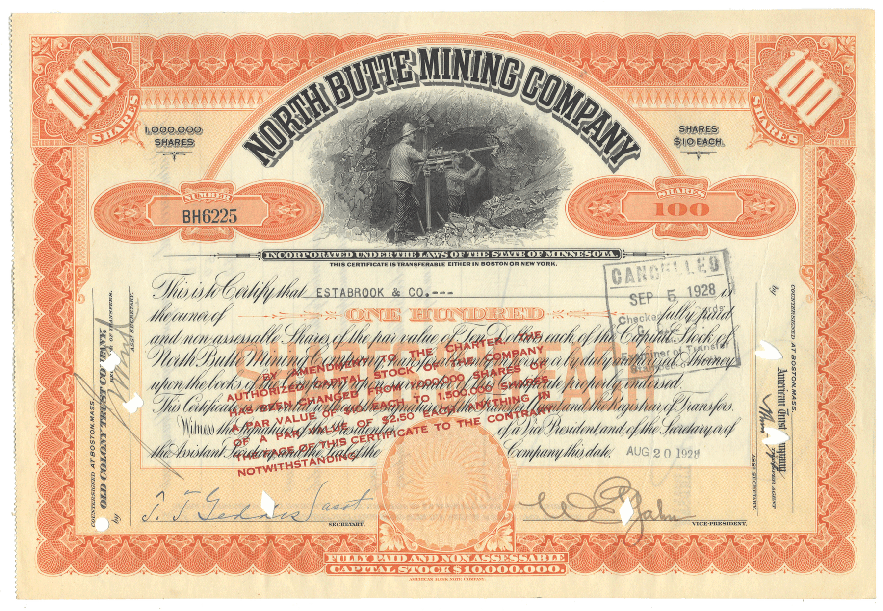 The North Butte Mining Company, in Butte, Montana, was incorporated under Minnesota law on April 1, 1905, by Charles A. Duncan, Louis W. Powell, and Joseph B. Cotton.