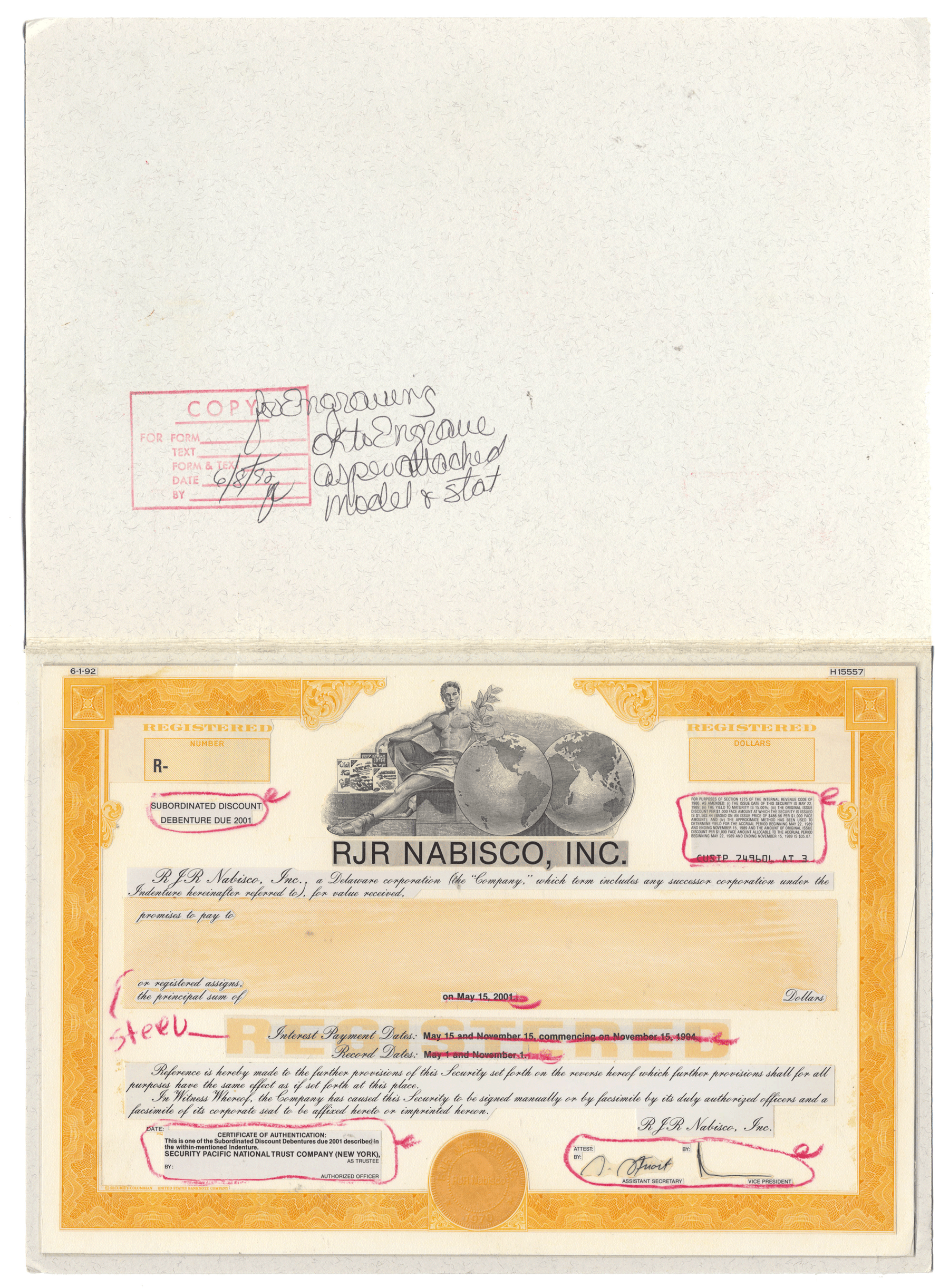 Working Proof for one of the company's Subordinated Debenture Bonds