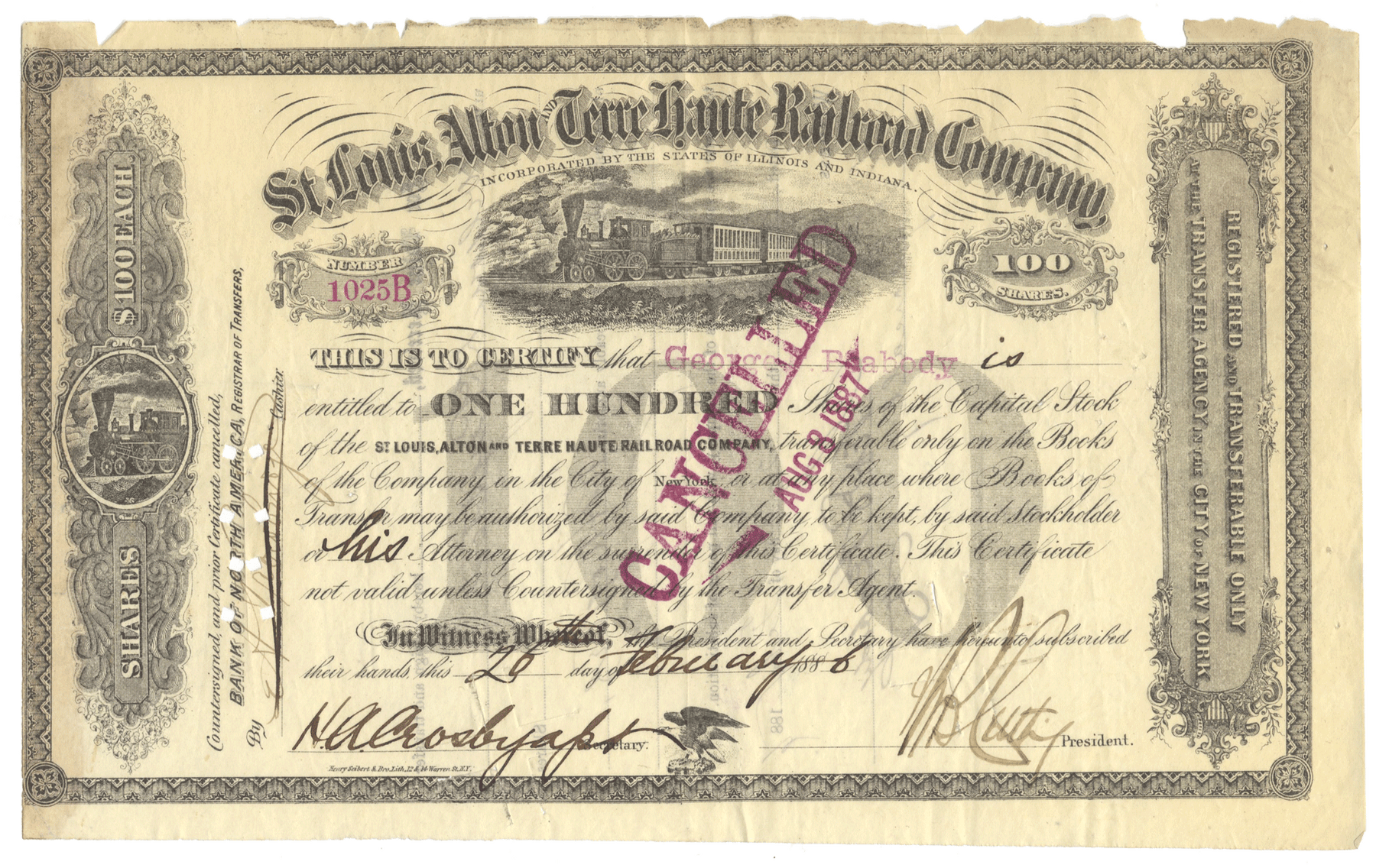 St. Louis, Alton and Terre Haute Railroad Company (Signed by George Peabody)