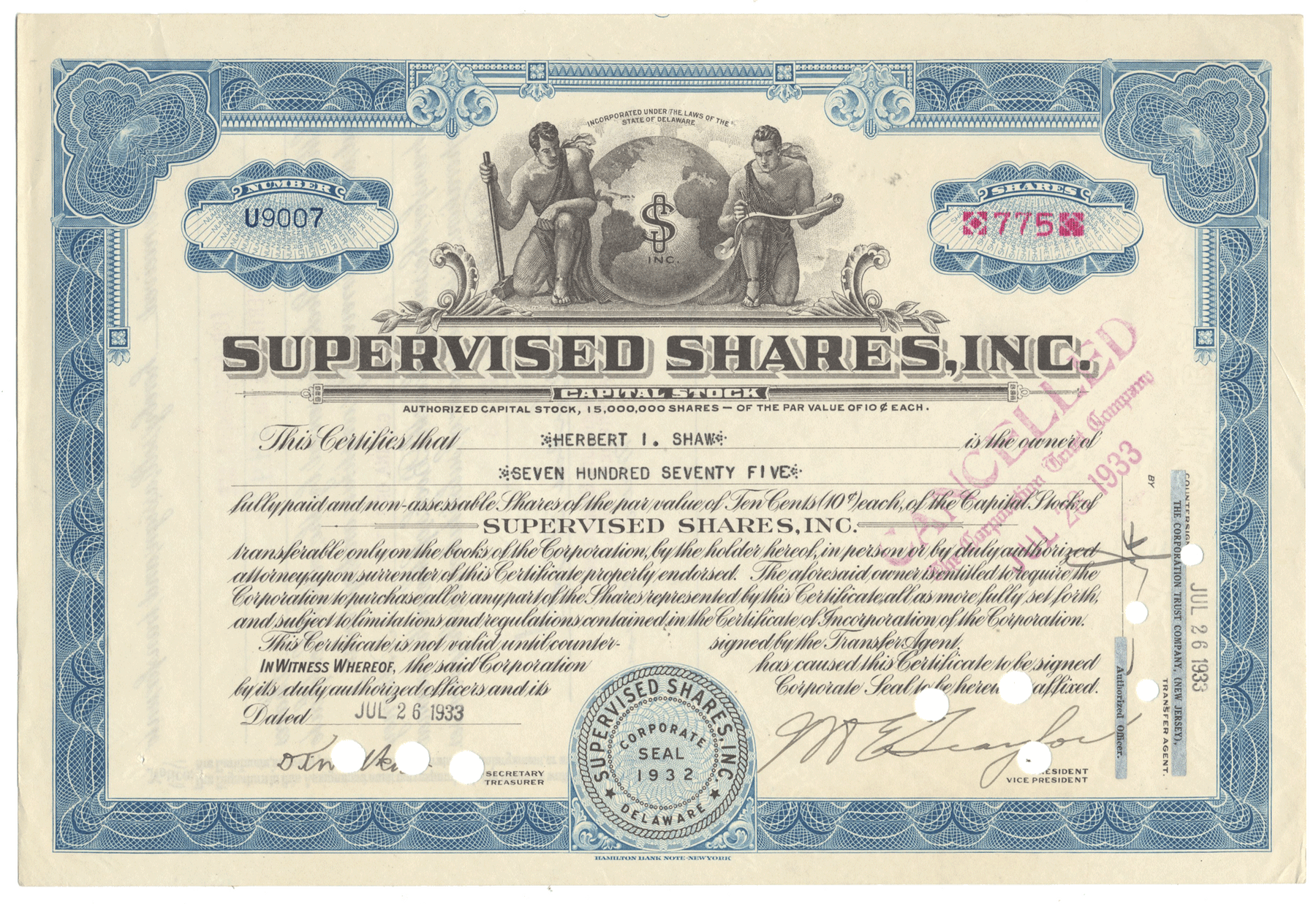 Supervised Shares, Inc. was an open end management investment company incorporated in Delaware in 1932.