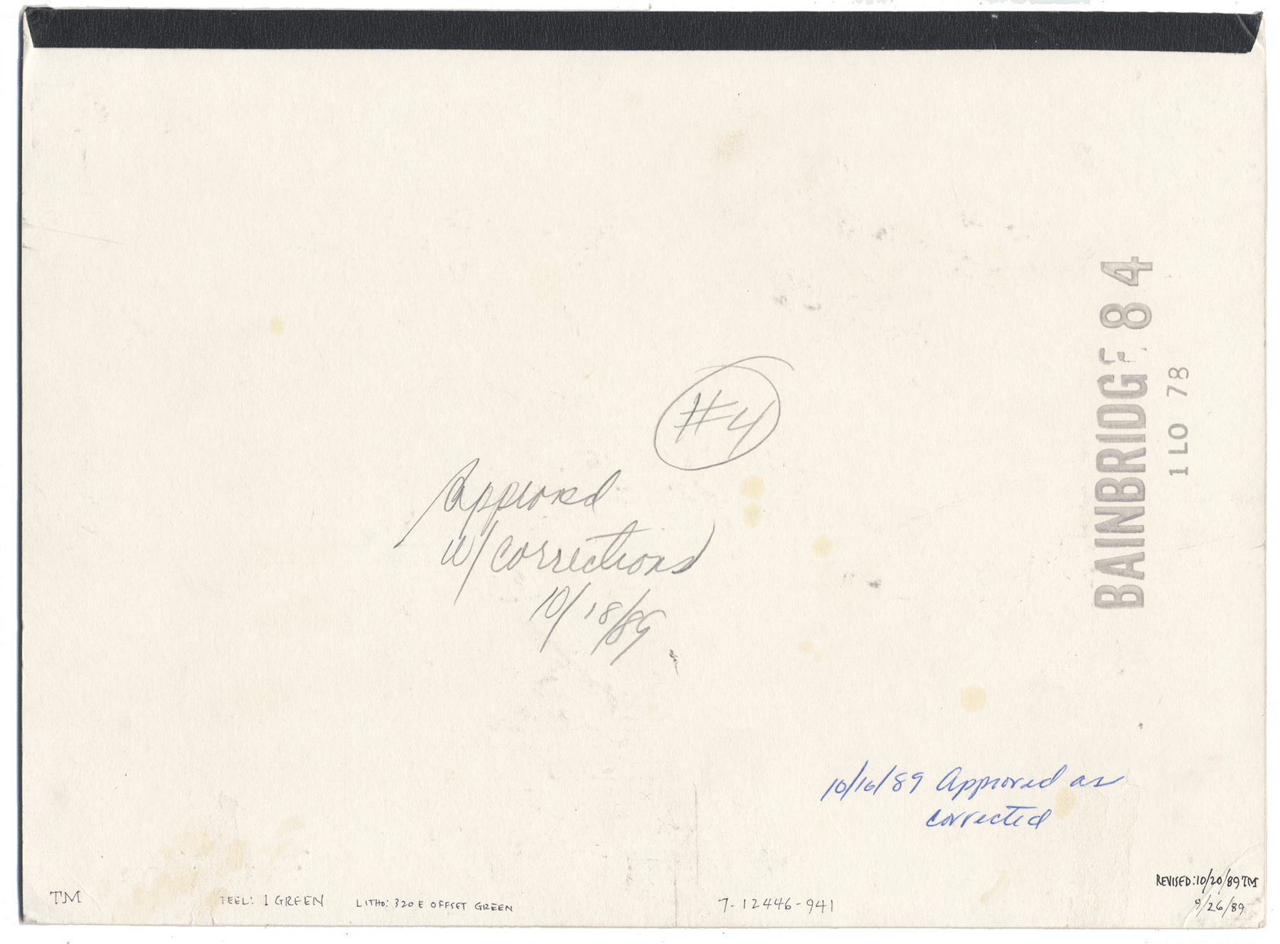 You will receive the exact proof pictured as it is the only one of it's kind. The first picture shows the proof with the edit layer lying atop the piece. The second picture shows just the proof with the plastic layer lifted out of view. The third picture shows the back of the cardboard with various notations and approvals.