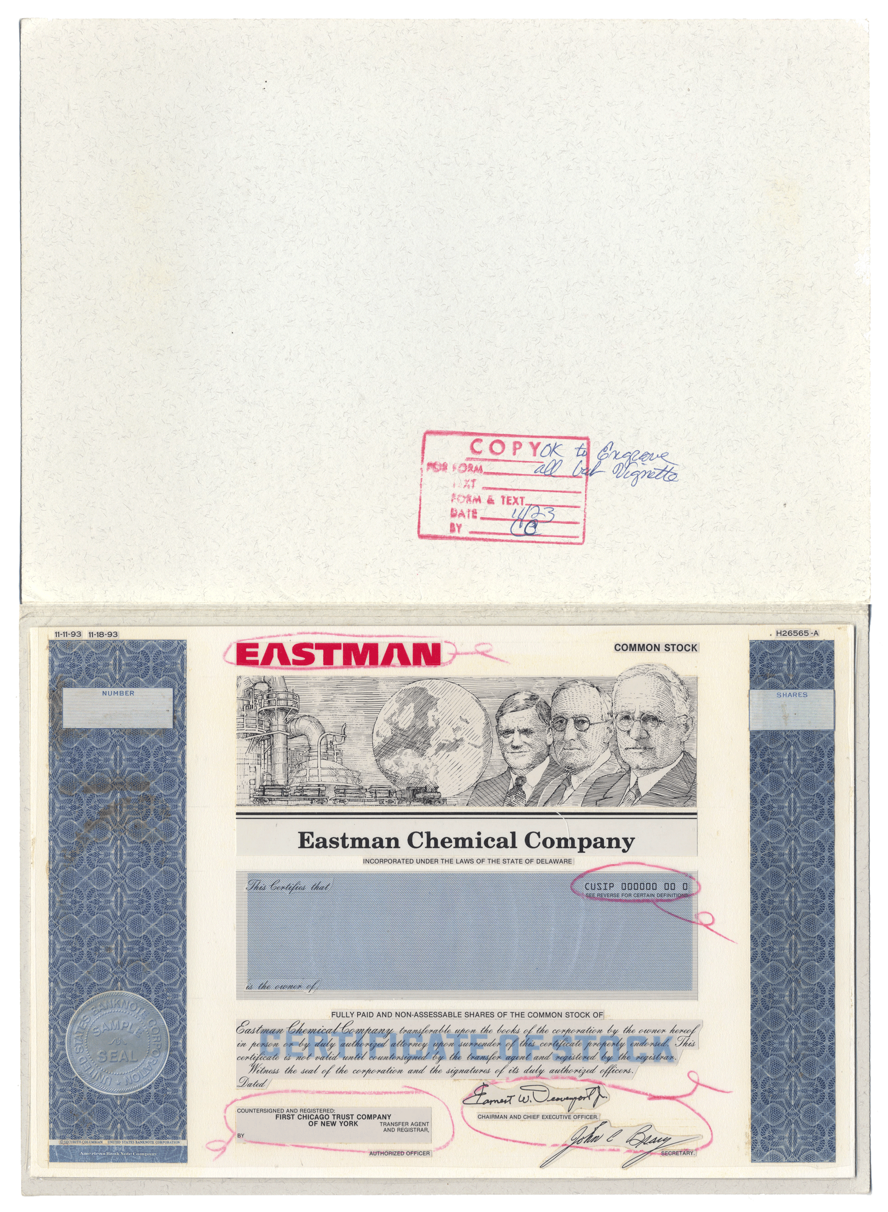 Fascinating piece of financial history. Eastman Chemical was an American chemical products manufacturer based in Kingsport, Tennessee. Founded in 1920, it was formerly a subsidiary of Kodak until 1994.