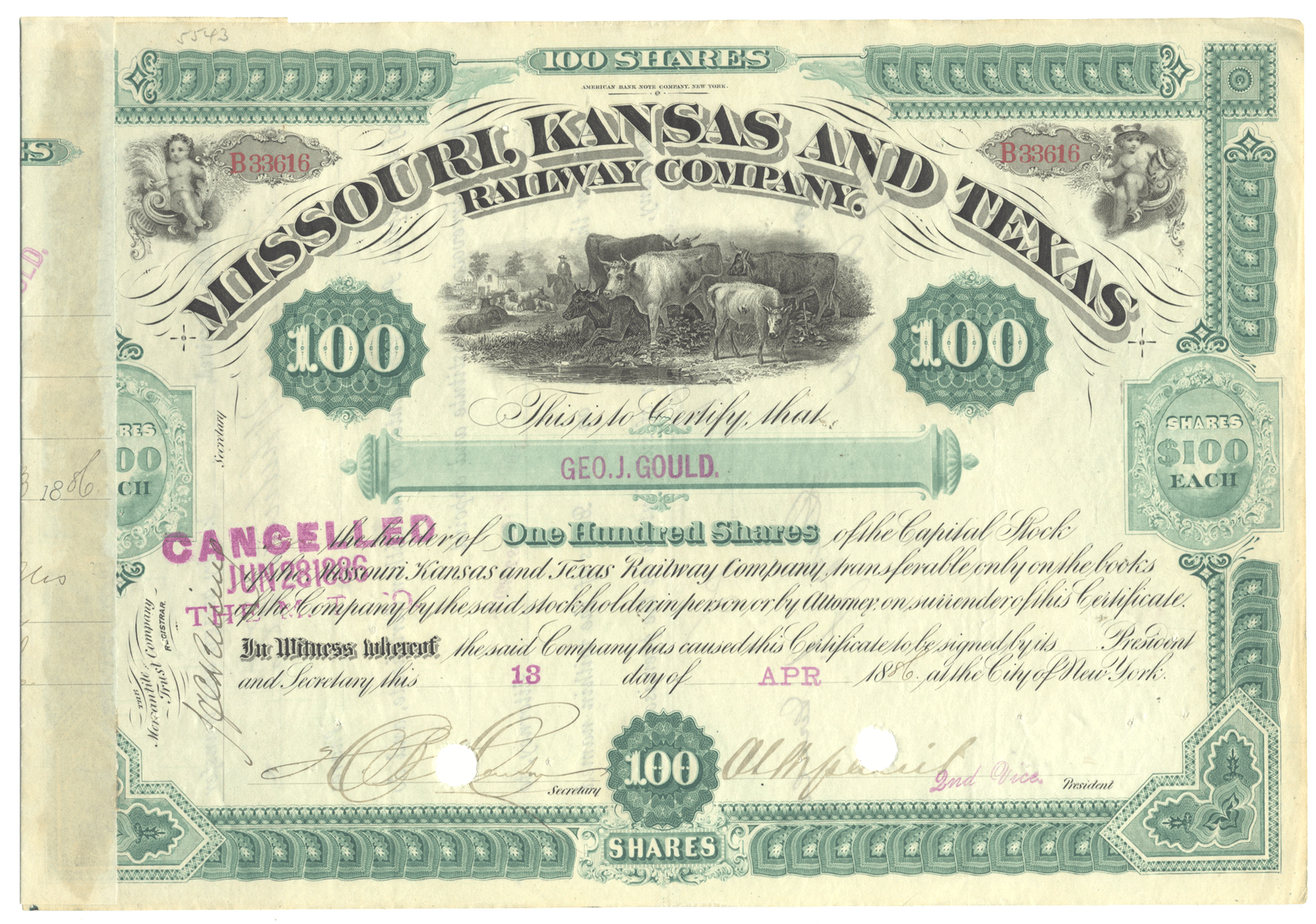 Missouri, Kansas and Texas Railway Company (Issued to and Signed by George Gould)