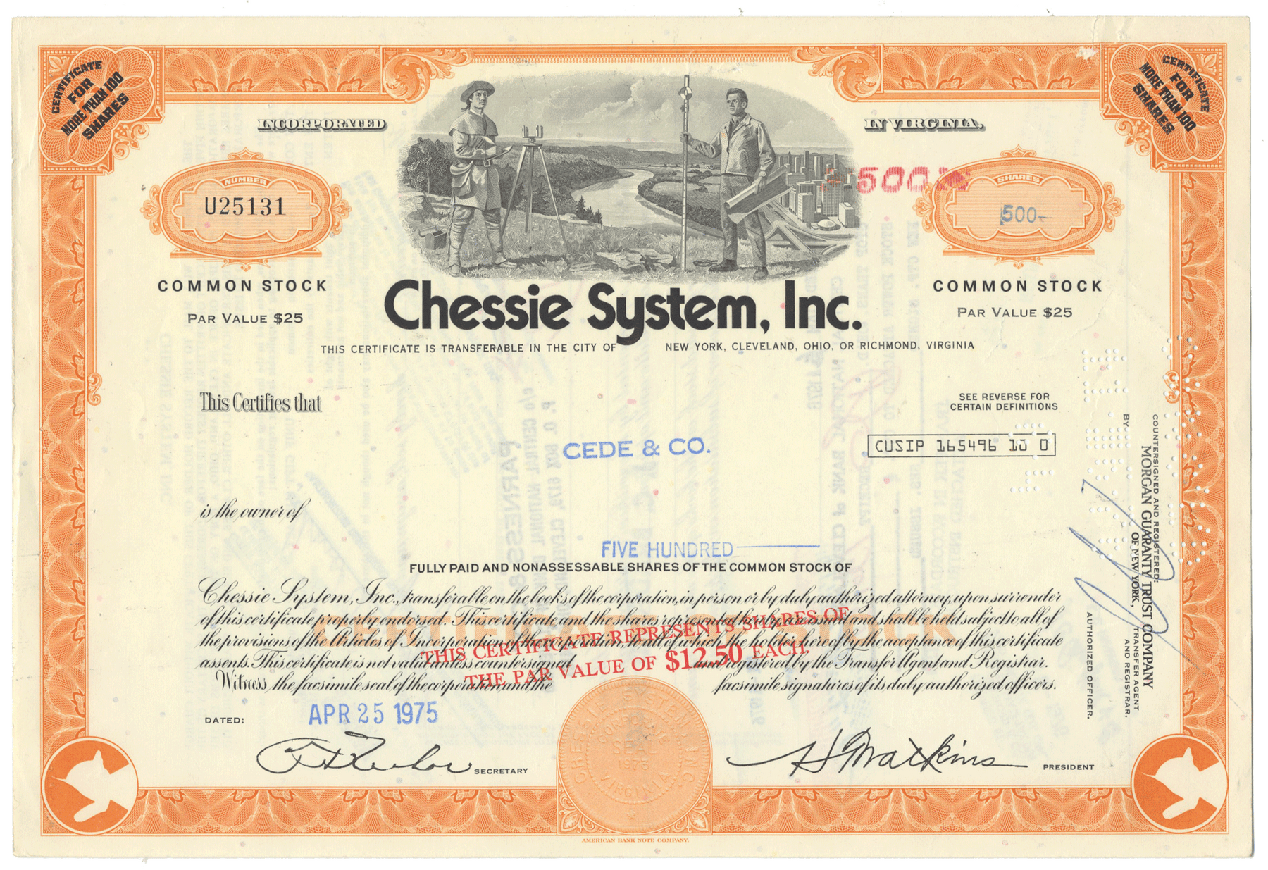 Certificates carry no value on any of today's financial indexes and no transfer of ownership is implied. All items offered are collectible in nature only. So, you can frame them, but you can't cash them in!