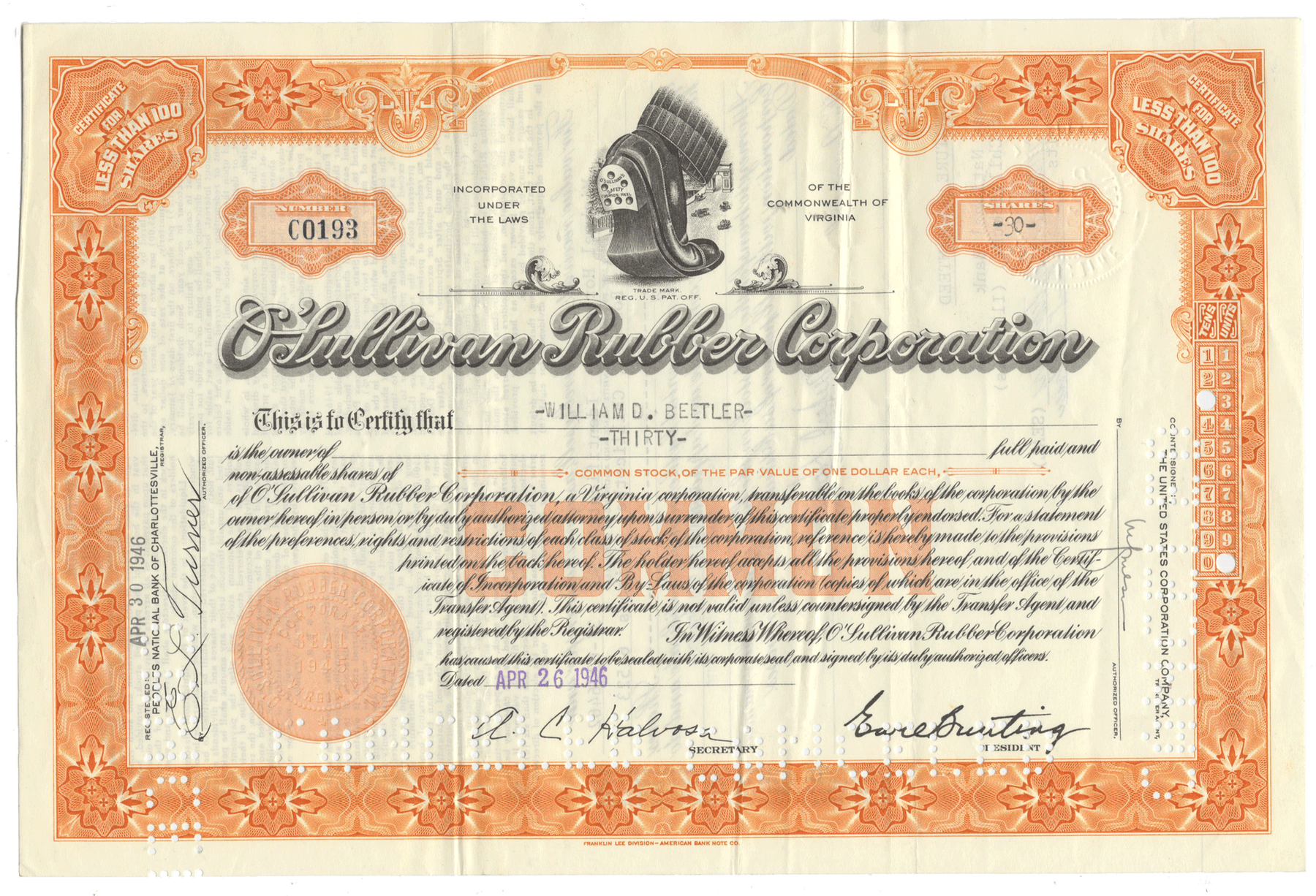 In 1932, the O'Sullivan Rubber Company moved to Winchester, Virginia. During World War II, synthetic rubber replaced natural rubber in footwear and American industry began to discover the many uses of plastics.