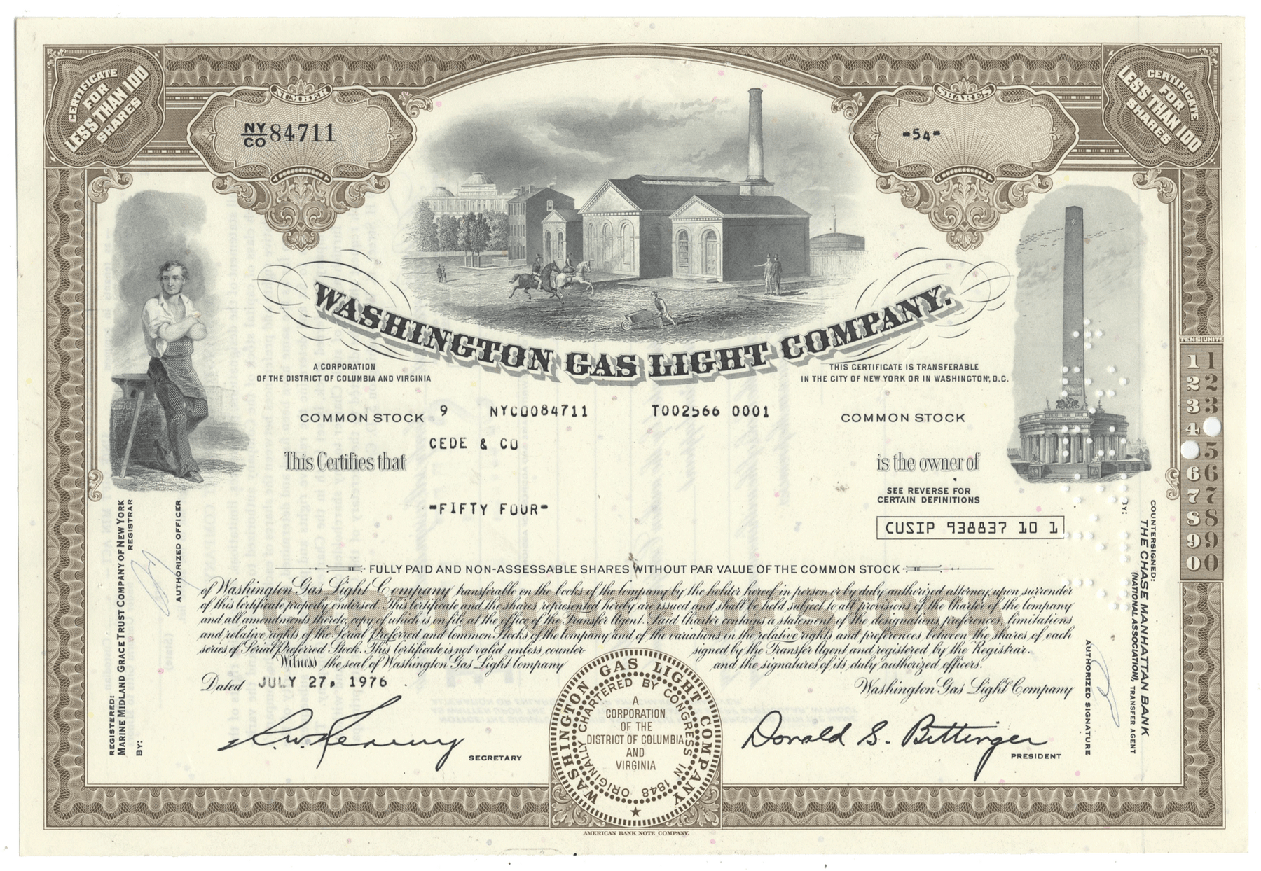 On July 8, 1848, four days after the cornerstone was laid for the Washington Monument, Washington Gas Light Company received its charter from Congress. About 45,000 people lived in the rough hewn capital city with its chronically muddy streets and lackluster infrastructure. A few buildings were lit by gas produced by an apparatus fired by wood or coal that created water carbureted hydrogen gas. But this gas lighting was confined to large institutions such as Georgetown College, theaters, and a few hotels.