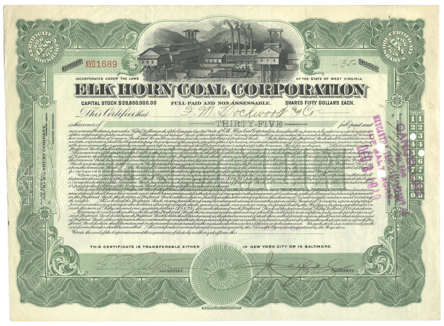 The Elk Horn Coal Corporation was formed in 1915 via a consolidation of the Elk Horn Fuel Company and the Elk Horn Mining Company.