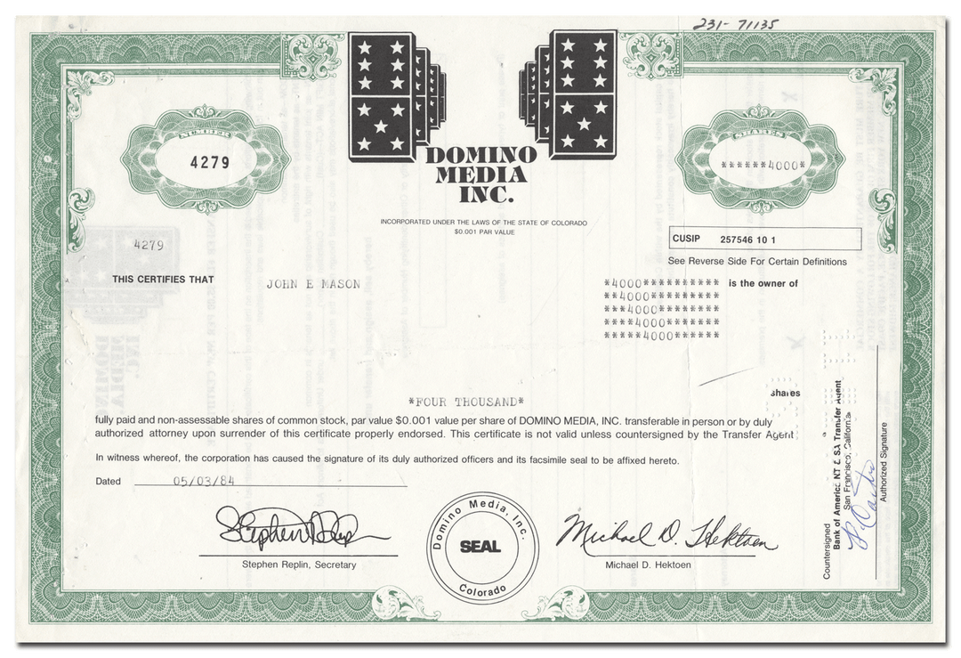 Domino Media, Inc. was incorporated in Colorado, and operated a music recording business through its wholly owned subsidiary Media Sound, Inc., at 311 West 57th Street, in Manhattan, New York City.
