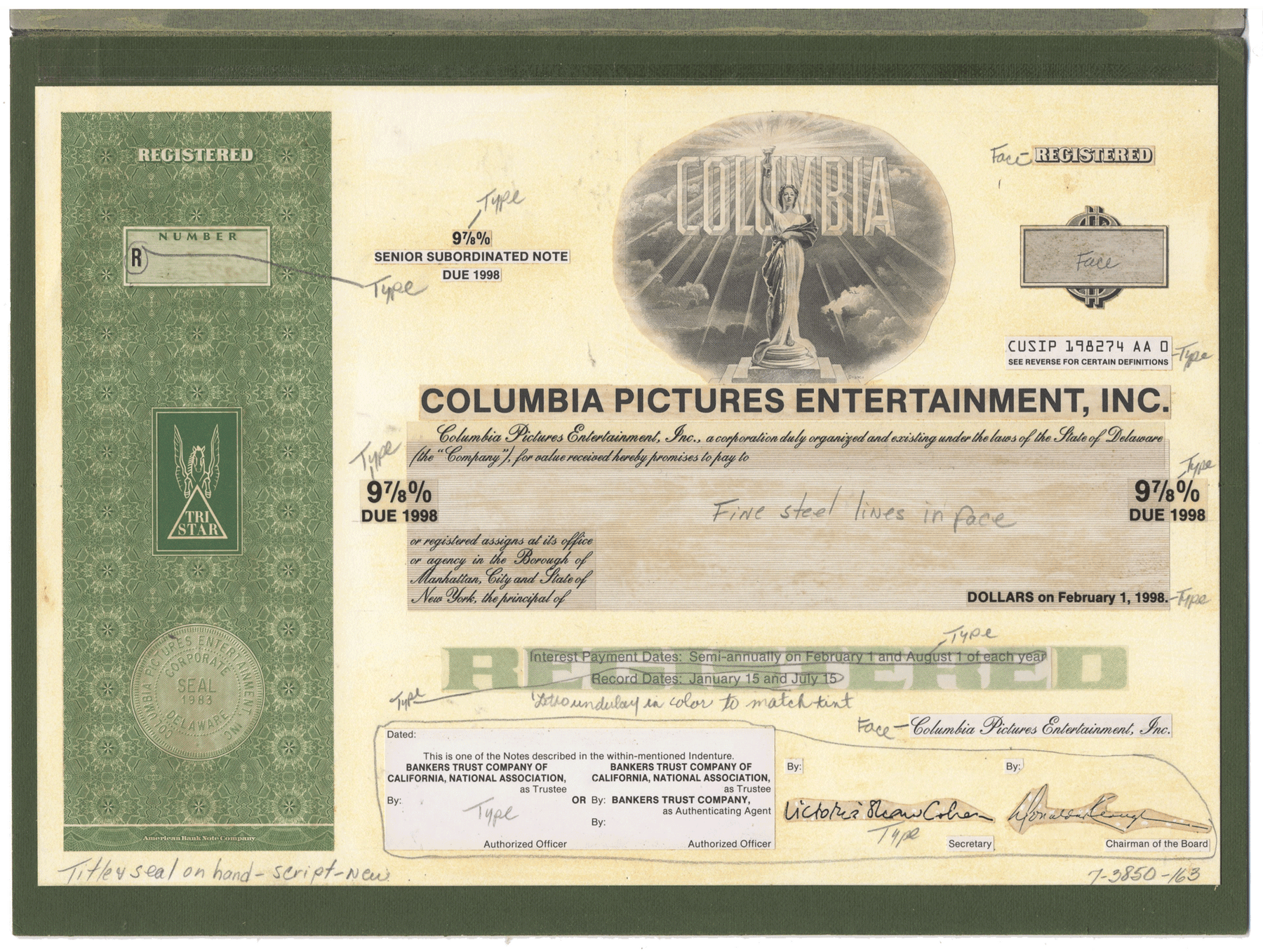 Rare COLUMBIA PICTURES ENTERTAINMENT Working Proof