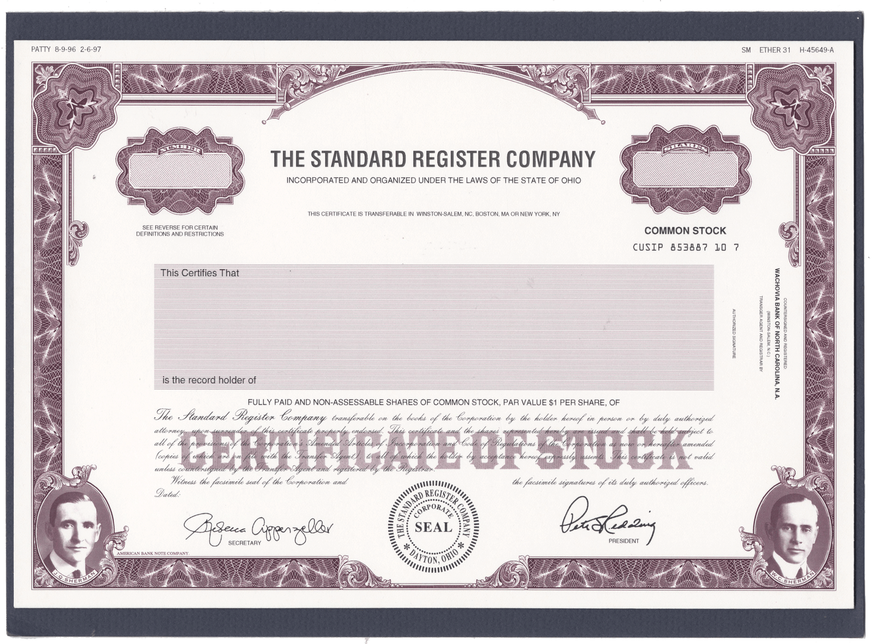 Rare STANDARD REGISTER COMPANY Working Proof