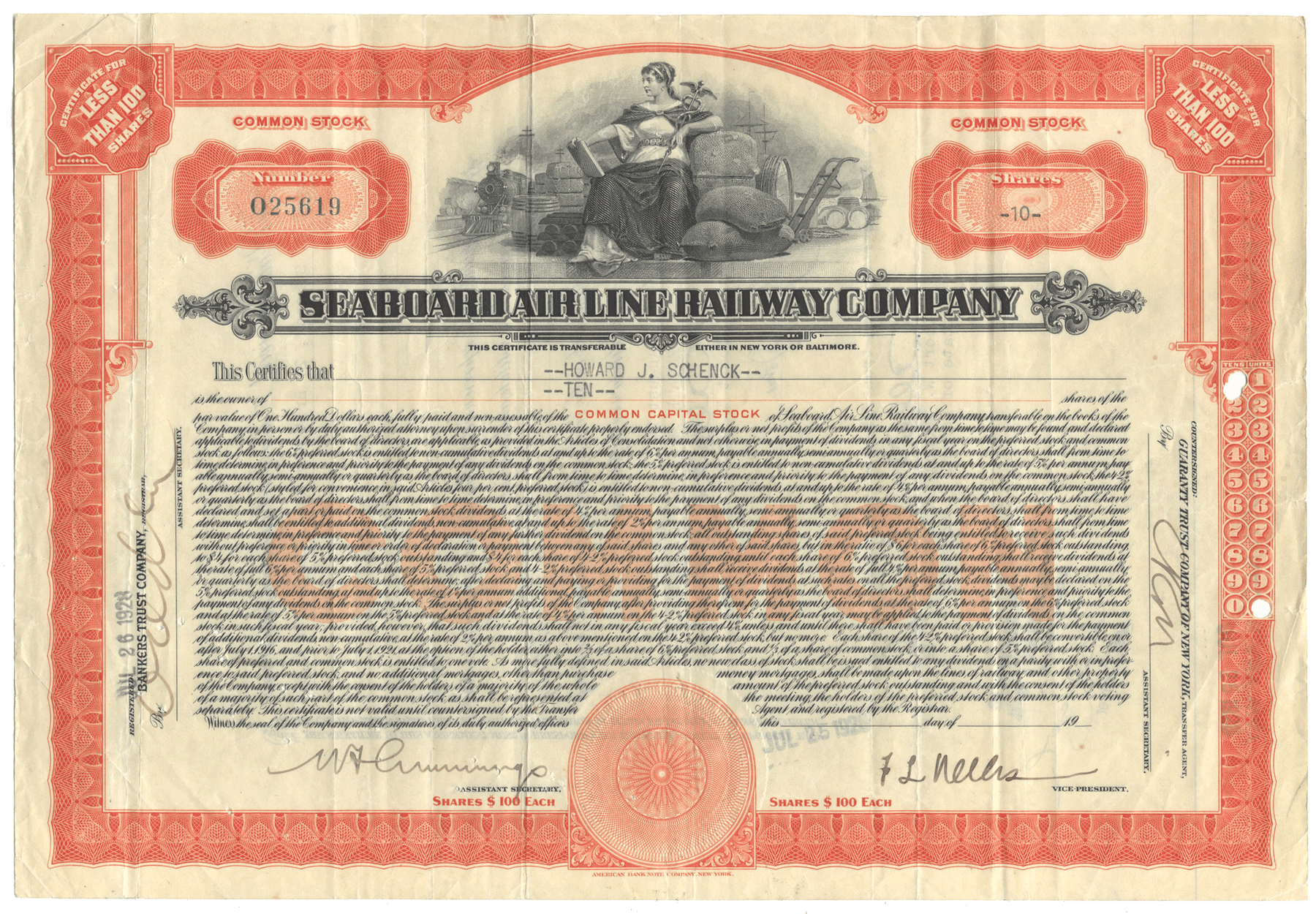 Certificates carry no value on any of today's financial indexes and no transfer of ownership is implied. All items offered are collectible in nature only. So, you can frame them, but you can't cash them in!