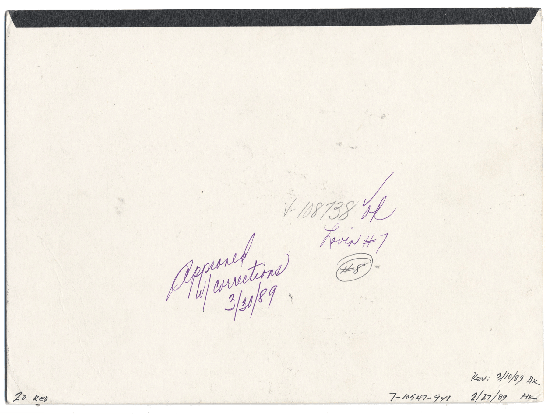 You will receive the exact proof pictured as it is the only one of it's kind. The first picture shows the proof with the edit layer lying atop the piece. The second picture shows just the proof with the plastic layer lifted out of view. The third picture shows the back of the cardboard with various notations and approvals.