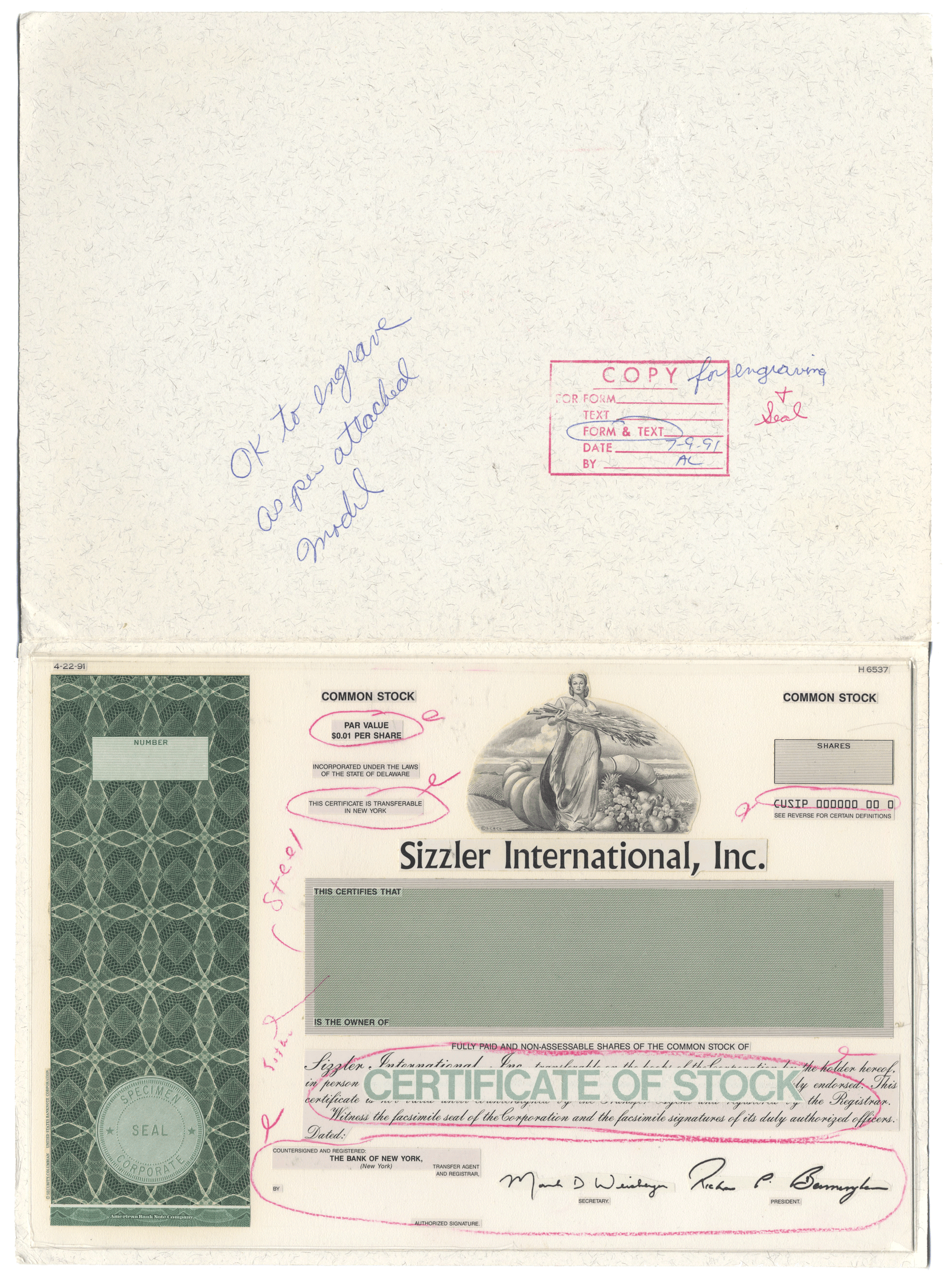 Very Rare SIZZLER RESTAURANTS Working Proof