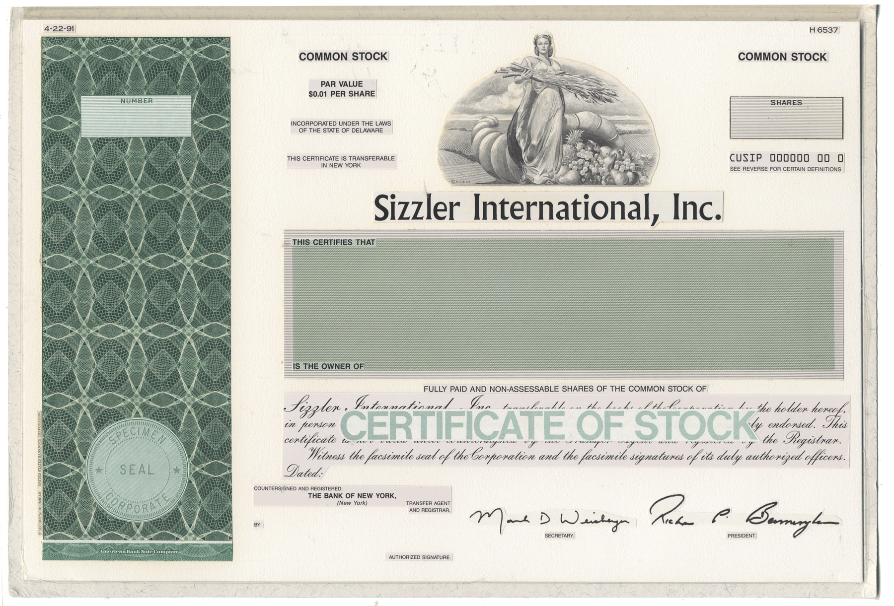 Certificates carry no value on any of today's financial indexes and no transfer of ownership is implied. All items offered are collectible in nature only. So, you can frame them, but you can't cash them in!